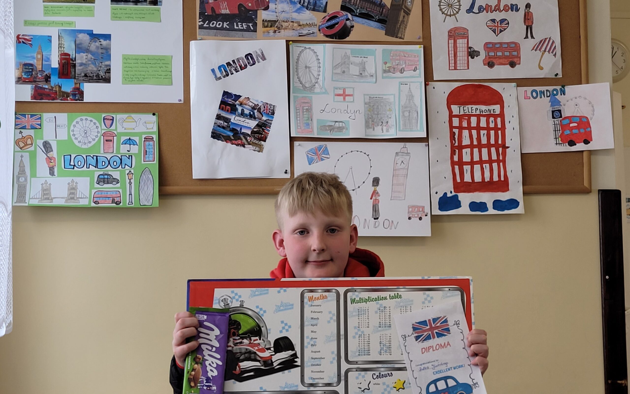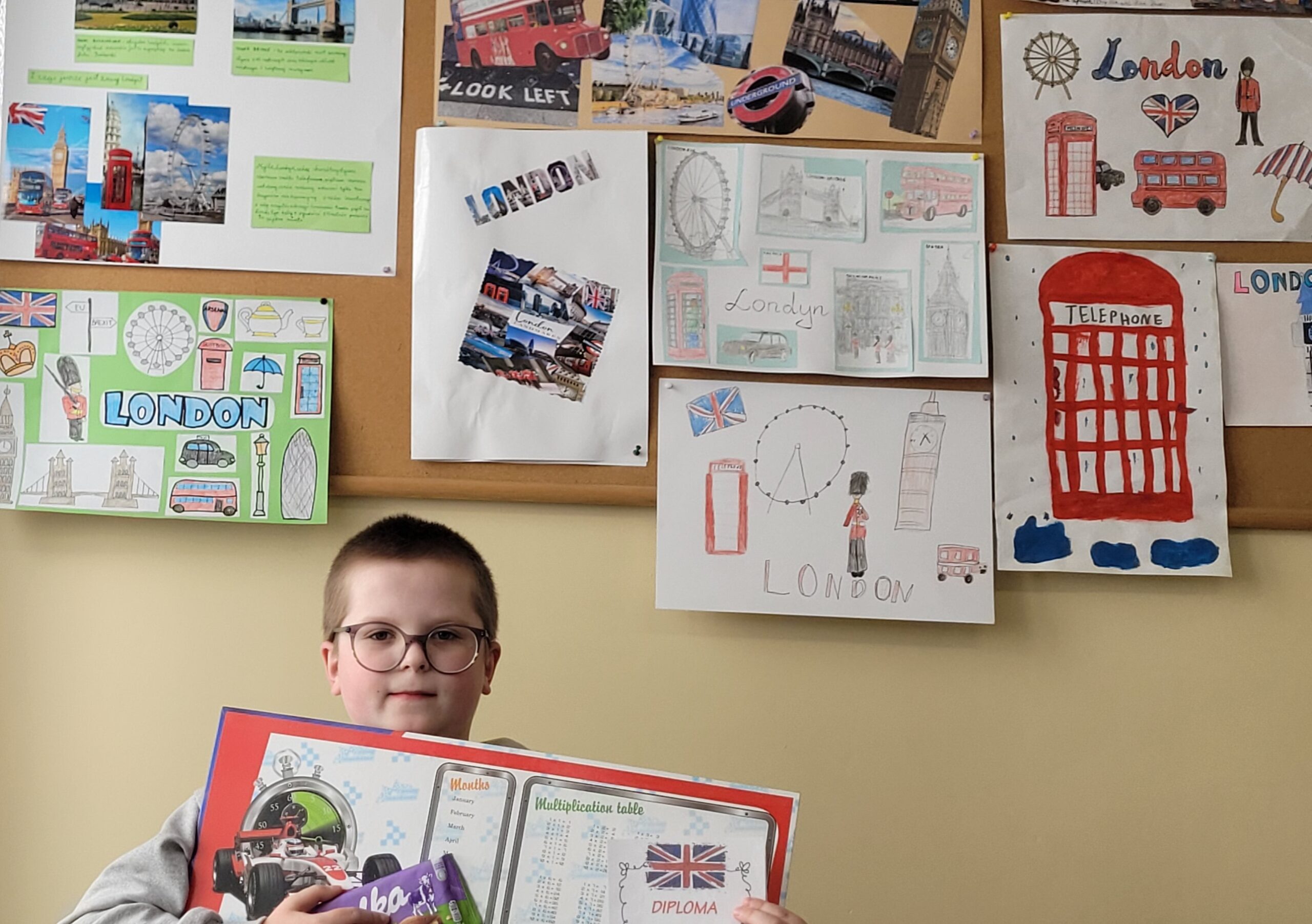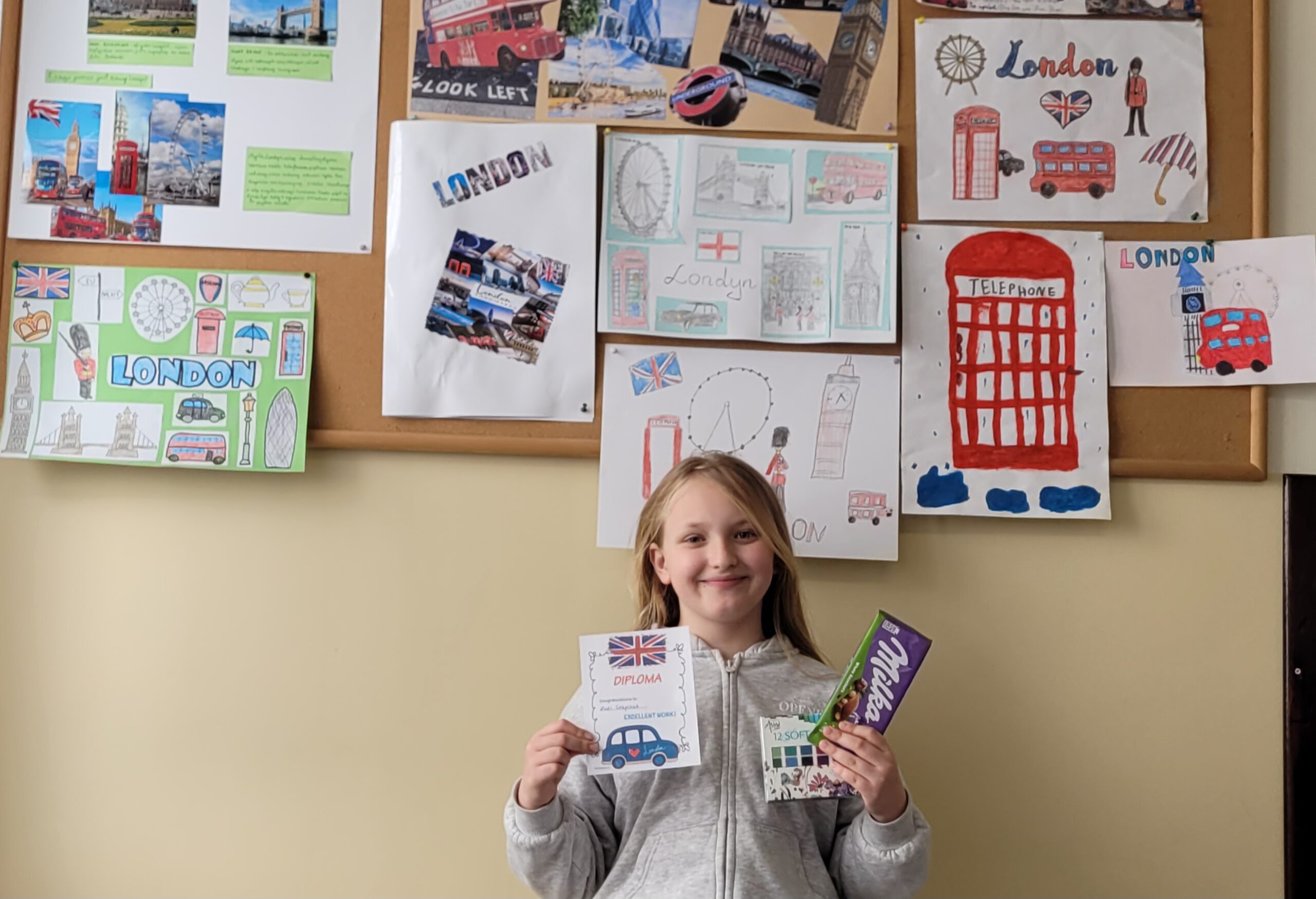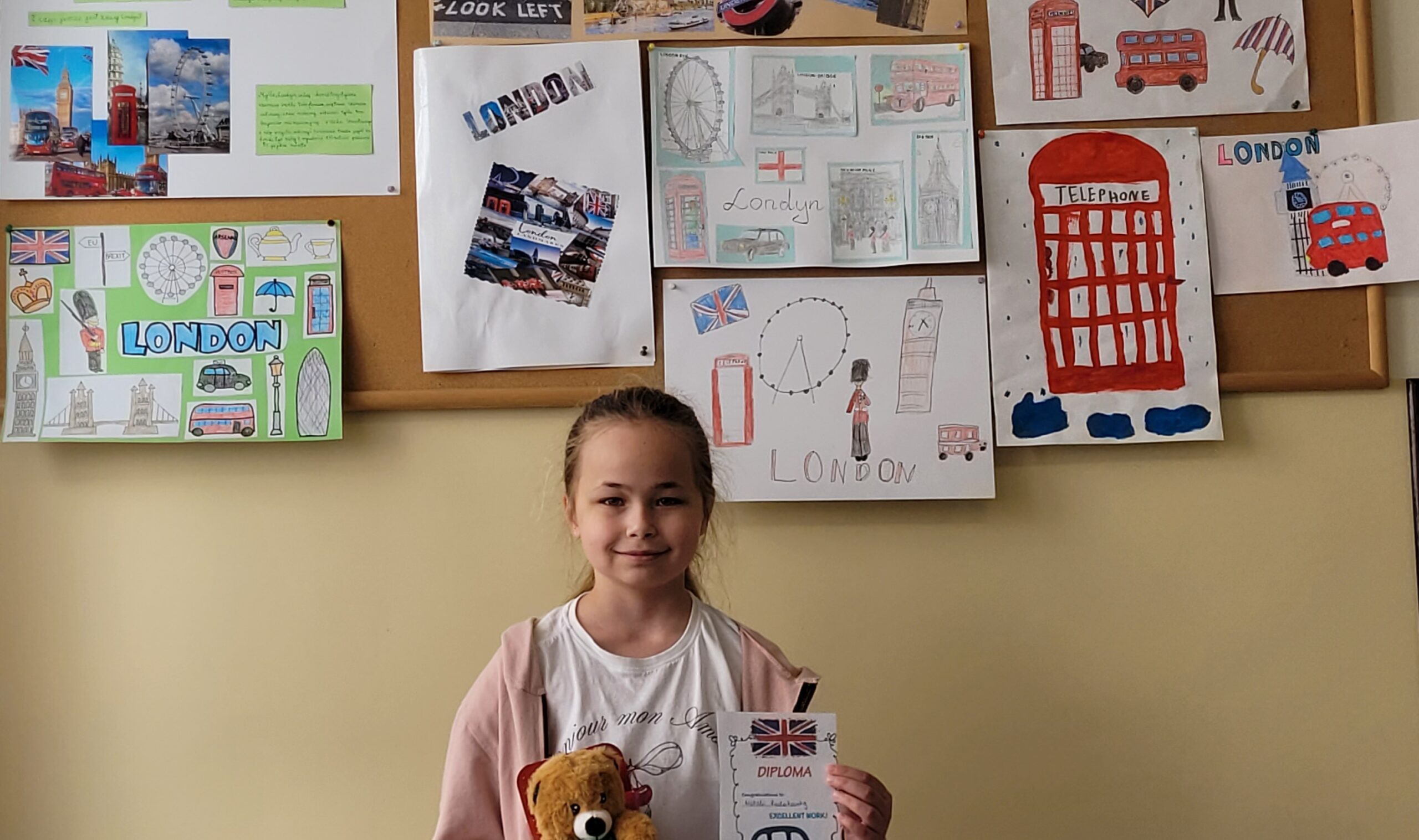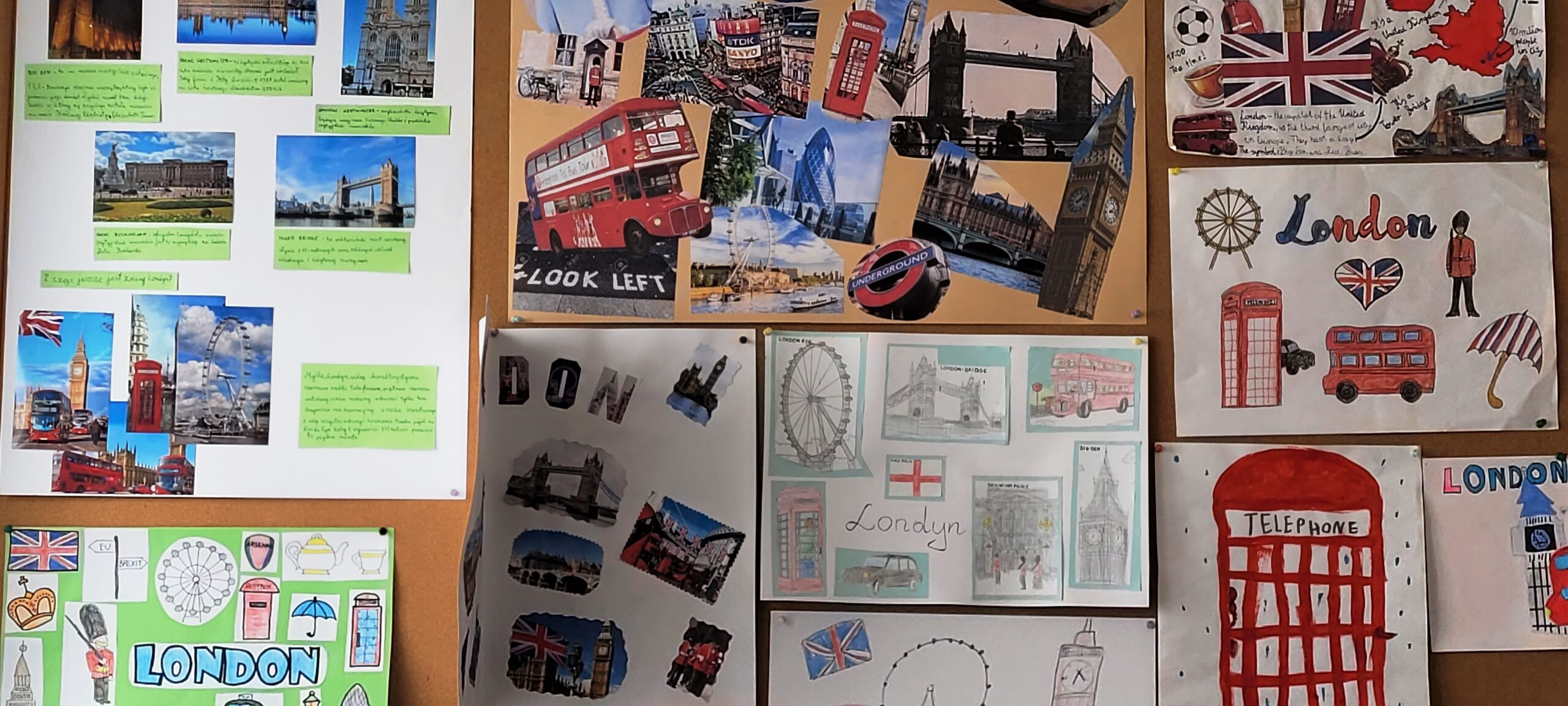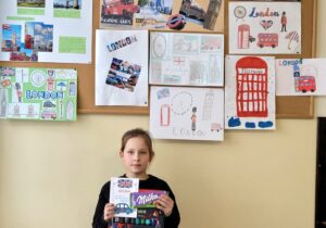 Świętowanie rozpoczęliśmy od wizualnej podróży do stolicy Anglii. Nasza gazetka korytarzowa zamieniła się w prawdziwą galerię sztuki dzięki konkursowi plakatów “Welcome to London”.